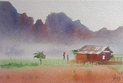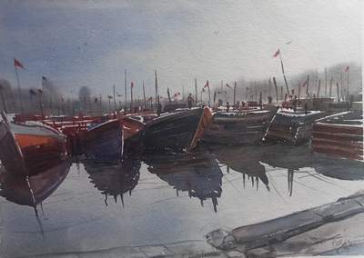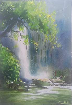 The Present series in Water colour on paper depicting serenity in Nature exemplifies subtle nuances of the tranquil beauty of the natural world. He has been deeply inspired by ever changing season, the play of light on water and the majestic beauty of mountains and forests. He has artistically revealed the ever changing moods and the majesty of the environment from the soft glow of dawn to the vibrant hues of dusk. His artistic use of colour, light and dimensionality and aesthetic panorama that enable a viewer to delve into the heart of the landscape and enjoy its subtleties in relevant perspectives of visual art. He has aptly given prominence to serenity of natural world and its omnipresent grandeur in the proper perspectives of visual art. His works connect the viewers to details of the untouched and serene worlds in the universe.