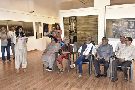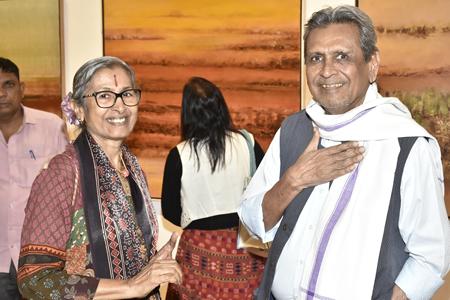 The distinguished chief guest, Amrit Gangar, an eminent film historian and cultural theorist, inaugurated the show with a thoughtful address. Gangar praised Kapadia’s ability to transform abstraction into an evocative language of emotional and cultural resonance, connecting the realms of art and philosophy and drew attention to the conceptual layering in Kapadia’s art, aligning it with traditional Indian philosophies and the rhythms of nature.