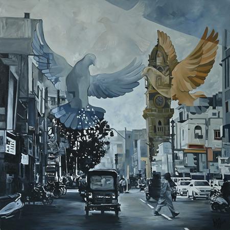 Deswandikar’s art subtly explores urban contradictions while suggesting a critique of metropolitan life. He urges us to first understand the inner, direct dynamics of things before addressing the external, indirect aspects.